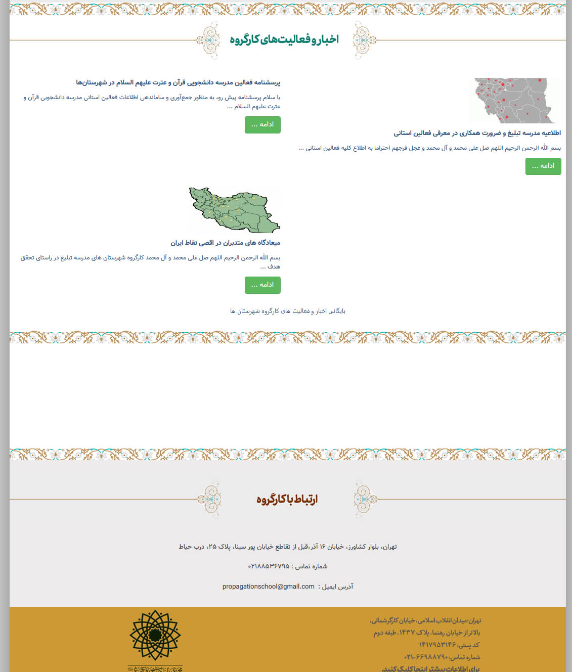 جهت آگاهی از فعالیت های شعب مدرسه دانشجویی قرآن و عترت (ع) دانشگاه تهران در سراسر کشور