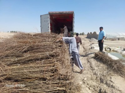 تخلیه نهالهای ارسالی در محل توزیع سیستان شهرستان هامون: