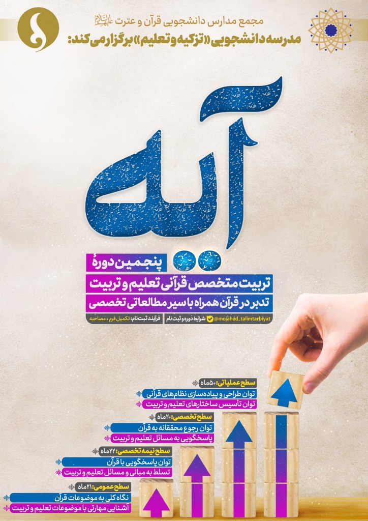 ✅ این دوره در چهار سطح و با محوریت تدبر در قرآن همراه با سیر مطالعاتی تخصصی تعلیم و تربیت اجرا میگردد.